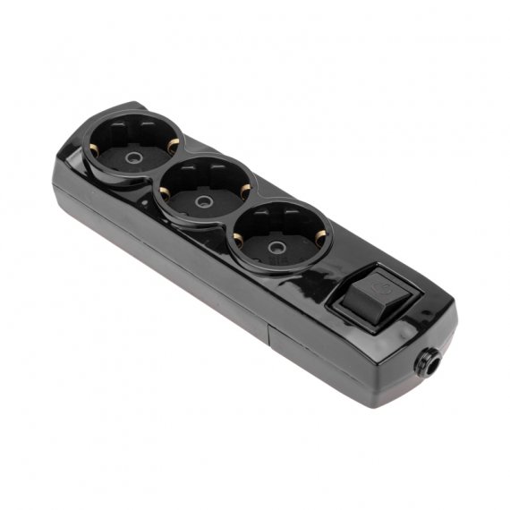 Колодка PREMIUM 3 гнезда, с/з, с выключателем, черный REXANT