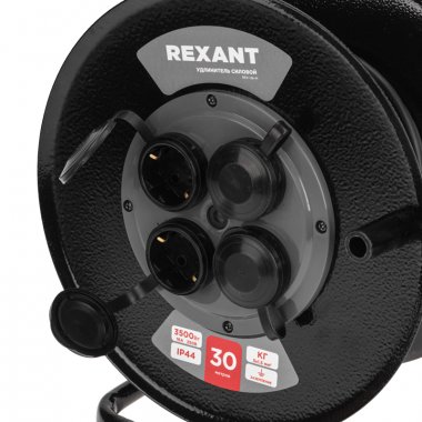 Удлинитель силовой КГ на катушке 4 гнезда, с/з, 30м, 3х1,5мм?, IP44 c защитными крышками, металлическая катушка REXANT Силовой удлинитель REXANT предназначен для подключения электрических приборов и электроинструментов. Незаменим в случае, когда стандартной длины шнура недостаточно для питания от стационарных розеток. Устройство оснащено четырьмя гнездами, что позволяет подключить несколько устройств. С автоматической защитой от перегрузки. Универсальная электрическая вилка на конце провода обеспечит подключение к розеткам российского и европейского стандарта. Для удобства транспортировки и хранения шнур поставляется на металлической катушке. Удлинитель с заземлением длиной 30 метров позволяет удобно разместить приборы на нужном расстоянии от розетки, а высококачественные материалы и конструкция обеспечивают безопасность и надежность работы. ВНИМАНИЕ! Перед включением максимальной нагрузки необходимо полностью размотать шнур.