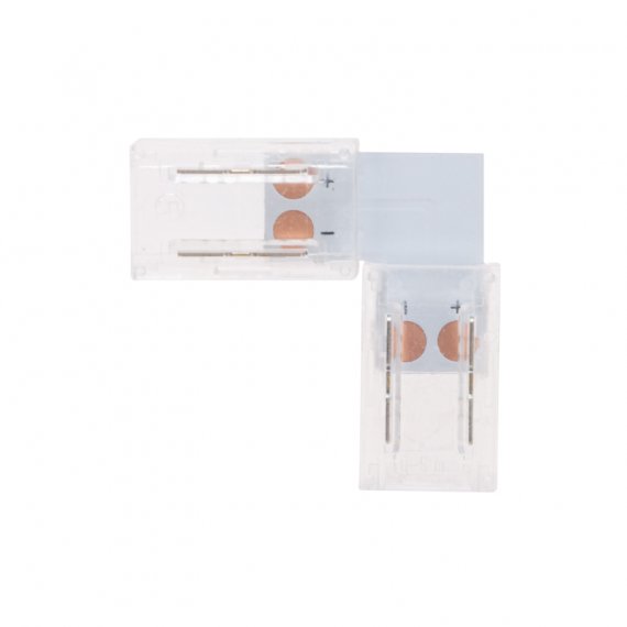 L-образный коннектор – это устройство, предназначенное для соединения нескольких отрезков одноцветных светодиодных лент COB шириной 8 мм.