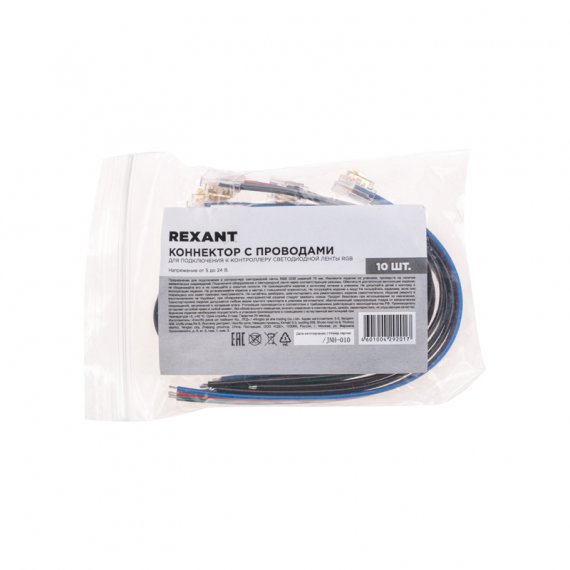Rexant 148-110 Коннектор с проводами для подключения к контроллеру светодиодной ленты RGB COB 10мм