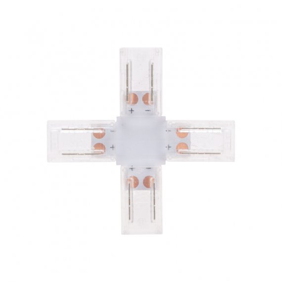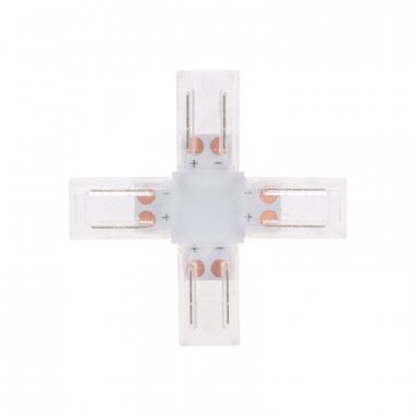 X-образный коннектор – это устройство, предназначенное для соединения четырех отрезков одноцветных светодиодных лент СОВ шириной 8 мм.