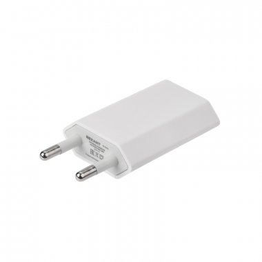 Зарядное устройство оснащено евровилкой для фиксации в розетках российского и европейского типа. Изделие позволит передать питание с силой тока 1 А на такие портативные аксессуары, как мобильные телефоны, планшеты, наушники, осветительные приборы, бытовую технику USB. Адаптер не подвержен перегреванию даже при длительном подключении к нему доступного гаджета.
