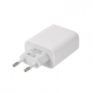 Сетевое зарядное устройство для iPhone/iPad REXANT 2 x USB 5V, 2.4 А белого цвета предназначено для обеспечения зарядки двух портативных электронных устройств.