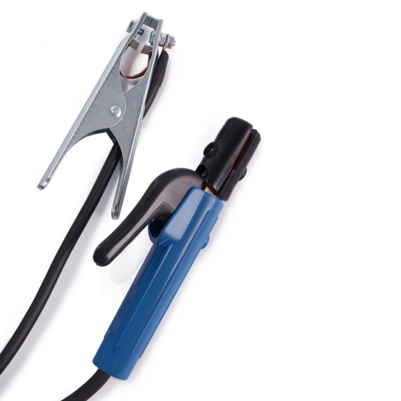 В комплект входят кабель с электрододержателем и кабель с клеммой для подключения к массе, до 200 А. Кабель – КГ 1х16, изготовлен по ГОСТ. Длина кабеля с электрододержателем – 5 м. Длина кабеля с клеммой – 5 м. Вилка кабельная – СКР 10-25.