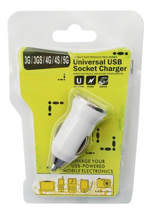 Автозарядка в прикуриватель USB small (АЗУ) (5V, 1 000mA) белая блистер