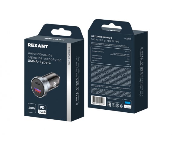 Rexant 18-2243-5 Автомобильное зарядное устройство c двумя портами (USB-A + USB-C)