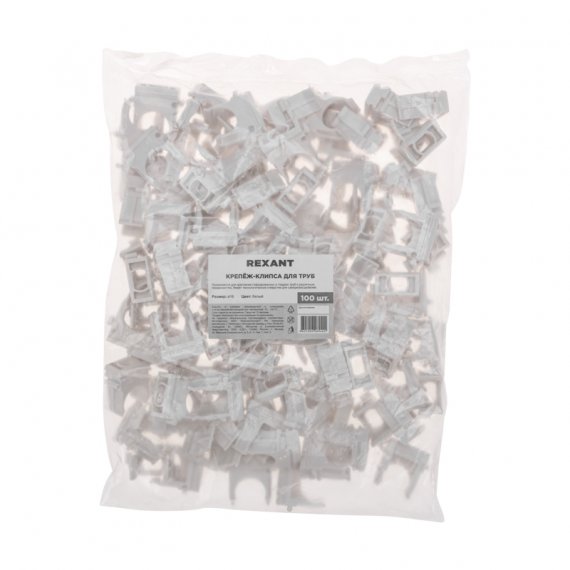 Крепёж-клипса для труб ?16 мм, белая (100 шт/уп) REXANT