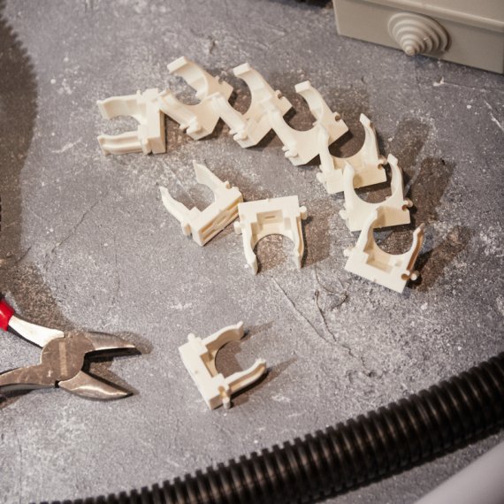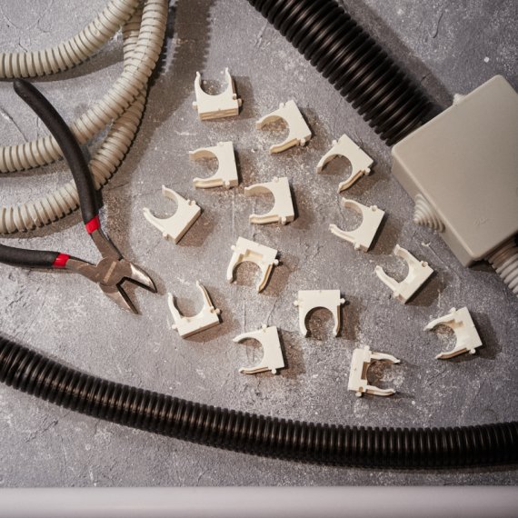 Изделие оснащено фиксаторами типа "шип-паз": при установке возможно соединять крепежи-клипсы различных диаметров.