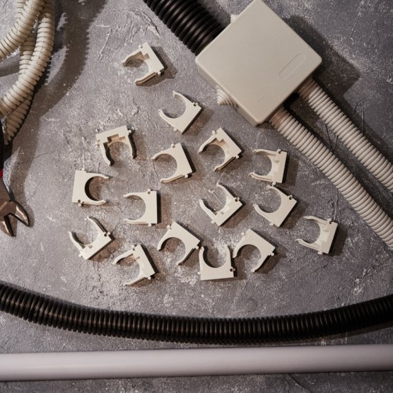 Изделие оснащено фиксаторами типа "шип-паз": при установке возможно соединять крепежи-клипсы различных диаметров.