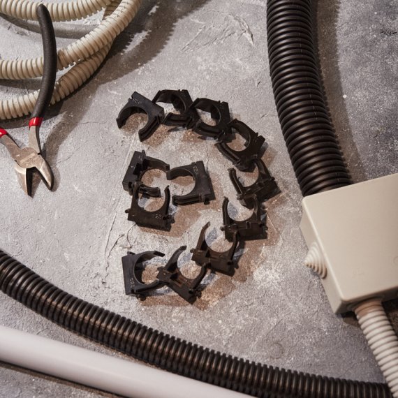 Изделие оснащено фиксаторами типа "шип-паз": при установке возможно соединять крепежи-клипсы различных диаметров.