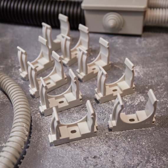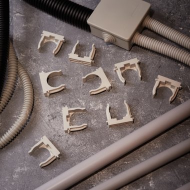 Изделие оснащено фиксаторами типа "шип-паз": при установке возможно соединять крепежи-клипсы различных диаметров.