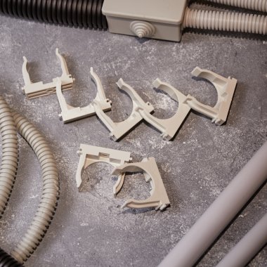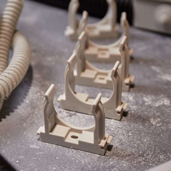 Изделие оснащено фиксаторами типа "шип-паз": при установке возможно соединять крепежи-клипсы различных диаметров.