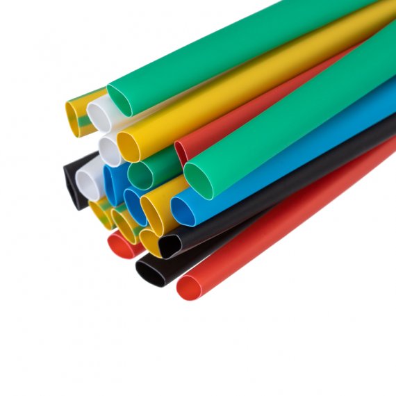 В состав набора входят трубки следующих цветов: черный, синий, красный, белый, желтый, зеленый, желто-зеленый (7 цветов по 3 шт.). Диаметр – 4 мм, длина – 10 см.