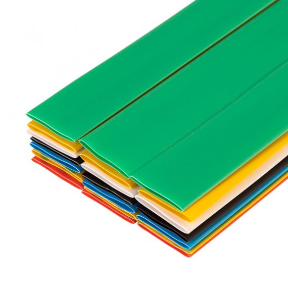 В состав набора входят трубки следующих цветов: черный, синий, красный, белый, желтый, зеленый, желто-зеленый (7 цветов по 3 шт.). Диаметр – 12 мм, длина – 10 см.