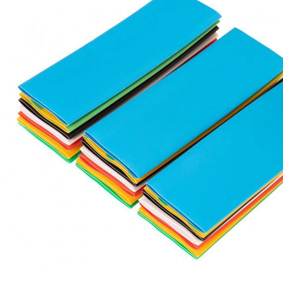 В состав набора входят трубки следующих цветов: черный, синий, красный, белый, желтый, зеленый, желто-зеленый (7 цветов по 3 шт.). Диаметр – 20 мм, длина – 10 см.