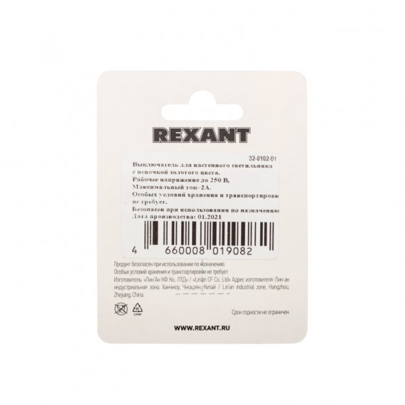 Rexant 32-0102-01 Выключатель для настенного светильника, gold