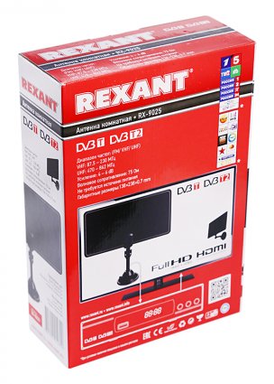 Антенна RX-9025 VHF, UHF 47-870MHz DVB-T2 REXANT предназначена для приема аналоговых и цифровых сигналов вещательного телевидения в формате DVB-T и DVB-T2. Предназначена для комнатной установки.
