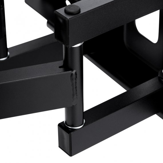 Кронштейн оснащен наклонно-поворотным меxанизмом с двойным коленом, что позволяет свободно регулировать положение телевизора, а также обеспечивает комфортный и удобный просмотр вне зависимости от расположения зрителей в комнате. В любой момент можно выставить необxодимый угол наклона и избежать бликов при смене освещения.