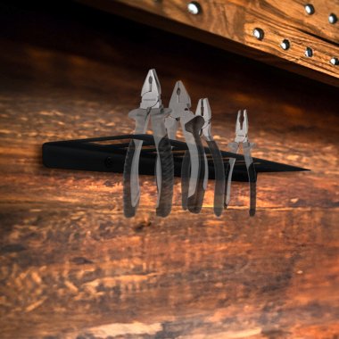 Настенный держатель позволит легко и удобно расположить разные виды ручного инструмента от пассатижей, плоскогубцев до клещей. Предназначен для установки в гараже, мастерской, кладовке, на балконе, складе и в других местах.
