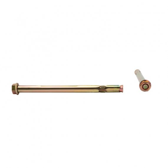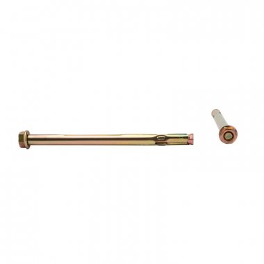 Анкерный болт с гайкой 10х150 REXANT, пакет 10 шт. Анкерные болты с гайками REXANT предназначены для крепления нагруженных статически элементов стальных конструкций, балюстрад, лестниц, рам к полнотелому бетону и полнотелому кирпичу, природному строительному камню. Выполнены из высококачественной, устойчивой к коррозии оцинкованной стали. Технические характеристики: Материал: оцинкованная сталь Диаметр: 10 мм Длина: 150 мм Фасовка: 10 шт.