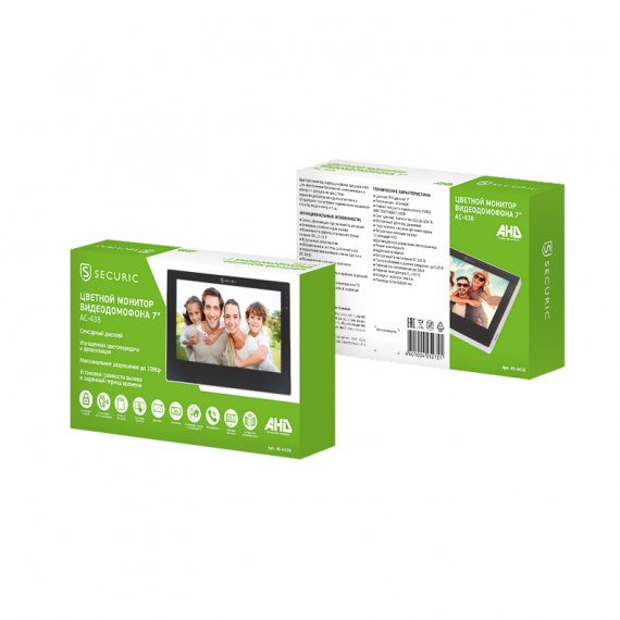 Цветной монитор видеодомофона 7" формата AHD(1080P), с сенсорным экраном, детектором движения, функцией фото- и видеозаписи (модель AC-438)