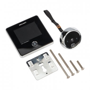 - Комплект поставки: видеоглазок, дисплей, металлический кронштейн, инструкция, крепежные винты, USB-кабель
