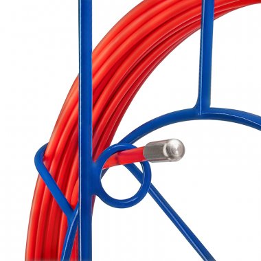 Протяжка кабельная (УЗК в напольной катушке), стеклопруток, d=6,0мм, 30м, красная REXANT Кабельная протяжка предназначена для прокладки кабелей различных видов в труднодоступных местах: внутри кабельных каналов и лотков, в пустотах стен, потолков и полов, внутри трубы и гофры, а также в подземных кабельных трассах. Протяжка представляет собой стеклопластиковый стержень, который обладает достаточной жесткостью и упругостью для свободного прохождения даже внутри заполненных каналов. Дополнительно стержень покрыт защитной полиэтиленовой оболочкой, которая уменьшает износ прутка и облегчает его протяжку благодаря тому, что снижает трение. Протяжка изготовлена из изоляционных материалов и обеспечивает безопасность работы с кабелем. УЗК размещено на металлическом барабане, который позволяет быстро разматывать и сматывать протяжку. Барабан установлен на металлическую раму для удобного хранения.