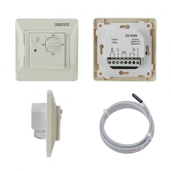 Терморегулятор механический RX-308G бежевый (совместим с Schneider серии Glossa, Atlas, Sedna, W59) REXANT