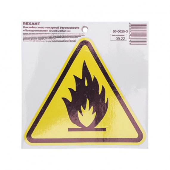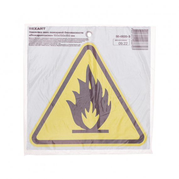 Rexant 55-0020-3 Наклейка знак пожарной безопасности «Пожароопасно» с хедером; 150х150х150 мм
