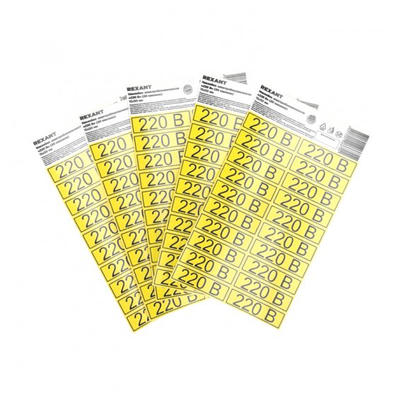 Наклейка знак электробезопасности «220 В» 15х50 мм (с хедером, 20 шт на листе) REXANT