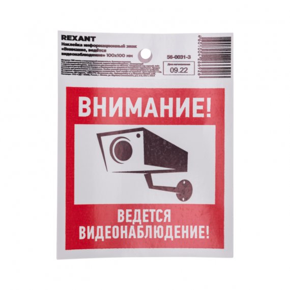 Rexant 56-0031-3 Наклейка информационный знак "Внимание, ведётся видеонаблюдение"