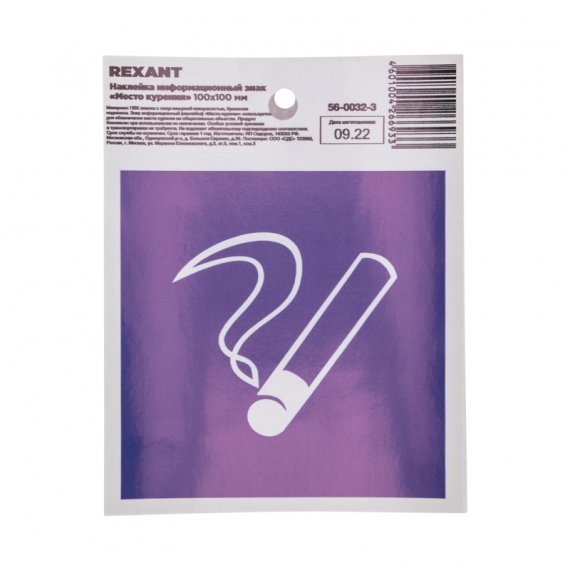 Rexant 56-0032-3 Наклейка информационный знак "Место курения" с хедером