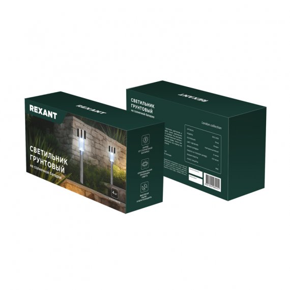 Светильник грунтовый Бонд, 4000К, встроенный аккумулятор, солнечная панель, коллекция Лондон (комплект 4 шт) REXANT Грунтовый светильник Бонд – это элемент садового декора, предназначенный для подсветки пешеходных дорожек, тропинок, цветников, а также различных архитектурных деталей ландшафта. Дизайн светильника вдохновлен великолепной архитектурой Лондона – города, известного своей элегантностью и историческим наследием. Простые линии и строгие изгибы подчеркивают уникальный характер, передающий антураж британской столицы. Светильник оснащен солнечной панелью, которая поглощает солнечные лучи в течение дня и преобразует их в электрическую энергию. Накопленная энергия хранится во встроенном аккумуляторе, что позволяет светильнику автономно функционировать около 6-8 часов и освещать окружающую территорию вечером и ночью, не требуя подключения к электросети. Вечерние прогулки в саду, уютные посиделки под звездами и романтические ужины наполнятся волшебством благодаря этому особенному светильнику.