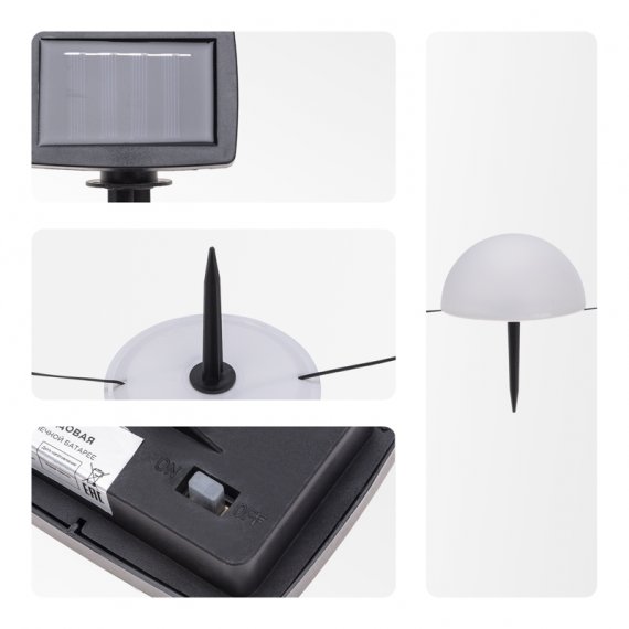 Светильник оснащен солнечной панелью, которая поглощает солнечные лучи в течение дня и преобразует их в электрическую энергию.