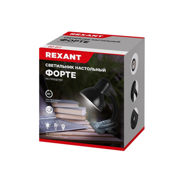 Rexant 603-1004 Светильник настольный Форте на прищепке, с цоколем Е27, 60 Вт