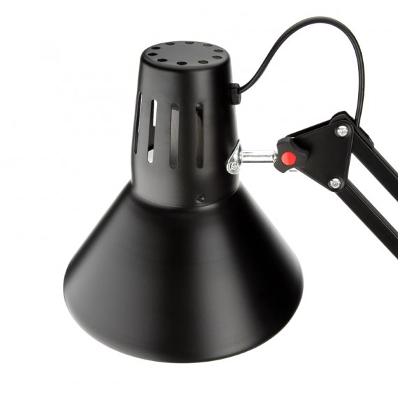 Винтовой зажим позволяет прочно фиксировать светильник как на стол, так и на спинку кровати и на прочие предметы мебели, а гибкая стойка позволяет менять направление света на 360°.