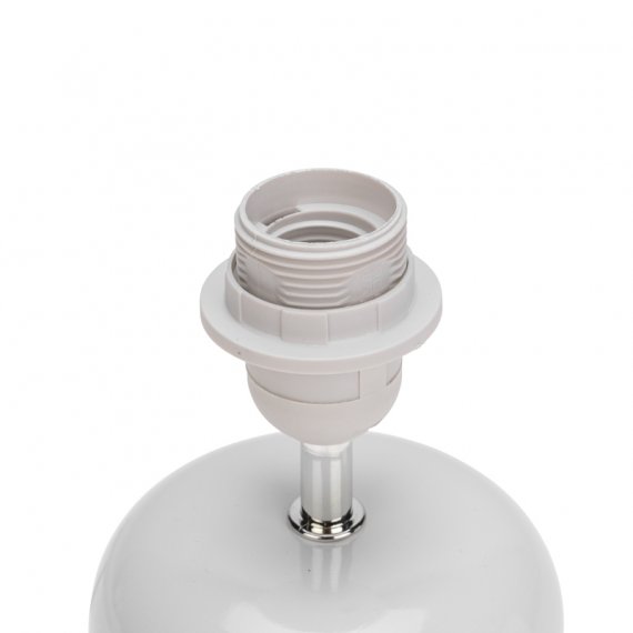 Декоративный настольный светильник с основанием белого цвета и белым абажуром станет современным и стильным интерьерным украшением.