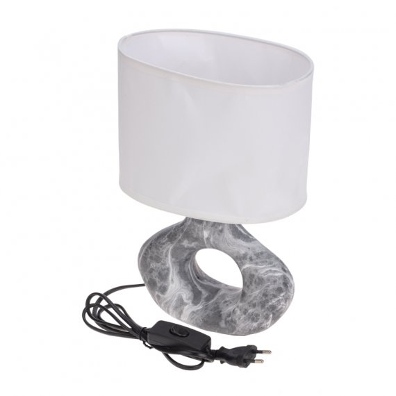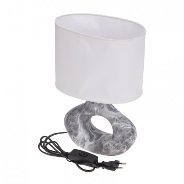 Светильник декоративный настольный Форте, основание кольцо под черный мрамор, белый абажур, цоколь Е27, 60Вт REXANT Декоративный настольный светильник с основанием в форме кольца под черный мрамор и белым абажуром станет современным и стильным интерьерным украшением. При производстве используются такие материалы как керамика, текстиль и металл. Светильник работает от сети 220 В и не требует дополнительных элементов питания. Оснащен патроном Е27, который совместим с лампами накаливания до 60 Вт, а также с энергосберегающими и светодиодными лампами. Оригинальный осветительный прибор наполнит помещение мягким светом, создаст гармонию дизайна и атмосферу комфорта.
