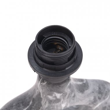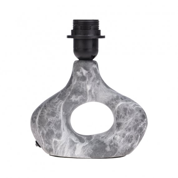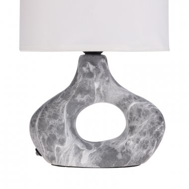 Декоративный настольный светильник с основанием в форме кольца под черный мрамор и белым абажуром станет современным и стильным интерьерным украшением.