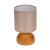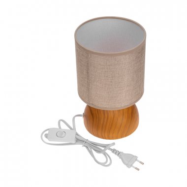 Декоративный настольный светильник с основанием под натуральное дерево и бежевым абажуром станет современным и стильным интерьерным украшением.