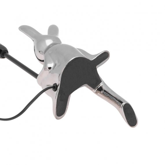 Светильник декоративный МОБИ Заяц хром REXANT Декоративный настольный светильник выполнен в необычном и стильном дизайне. Представляет собой осветительный прибор, который станет оригинальным интерьерным украшением. При производстве используются такие материалы, как смола и металл. Светильник работает от стандартной сети 220 В и не требует дополнительных элементов питания. Оснащен патроном Е14, который совместим с лампами накаливания до 40 Вт, с энергосберегающими и светодиодными лампами. Серебряный заяц – неповторимый предмет декора для дома и уюта.
