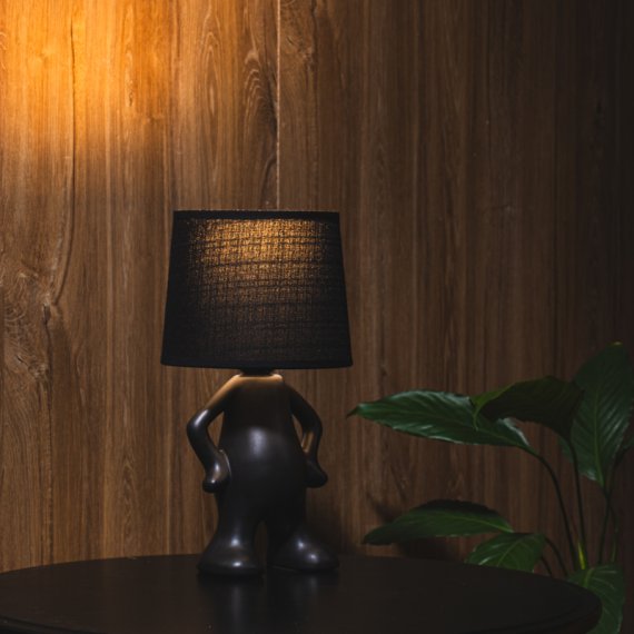 Светильник декоративный Человечек, черный с черным абажуром, Е27 REXANT Декоративный светильник – это не только источник качественного освещения, но и стильный элемент декора, придающий интерьеру оригинальность. Светильник выполнен в форме забавной фигурки человека, что, несомненно, привлечет внимание и интерес окружающих. Подходит для размещения в спальнях гостиных, коридорах и других помещениях, где хочется добавить веселого и нестандартного декора. Светильник с патроном Е27 совместим с лампами накаливания до 40 Вт, а также с энергосберегающими и светодиодными лампами. Работает от стандартной сети 220 В и не требует дополнительных элементов питания. Для удобства включения и выключения на проводе предусмотрен выключатель. Декоративный светильник в форме человечка станет отличным выбором для тех, кто ценит оригинальность, уют и комфорт.