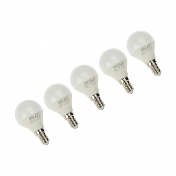 Наименование | Лампа светодиодная Шарик -GL 7,5 Вт E14 713 Лм 4000 K нейтральный свет REXANT-5 шт./уп. |