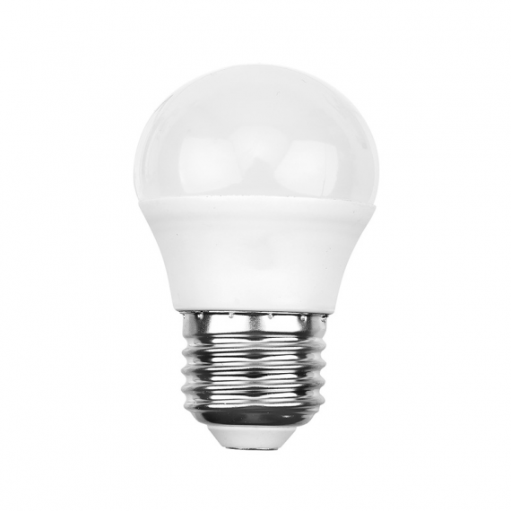 Светодиодная лампа с цоколем Е27 мощностью 7,5Вт выполнена в форме шара. Лампа с такой колбой не раздражает глаз и излучает нейтральный свет (4000K) без вредного мерцания.