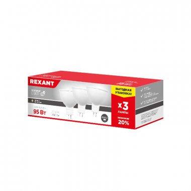 Лампа светодиодная Рефлектор-спот 9,5Вт GU5,3 760Лм 2700K теплый свет (3 шт/уп) REXANT