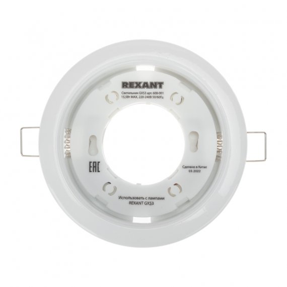 Комплект REXANT, состоящий из лампы и светильника GX53, предназначен для освещения бытовых и административных помещений в подвесных и натяжных потолках.
