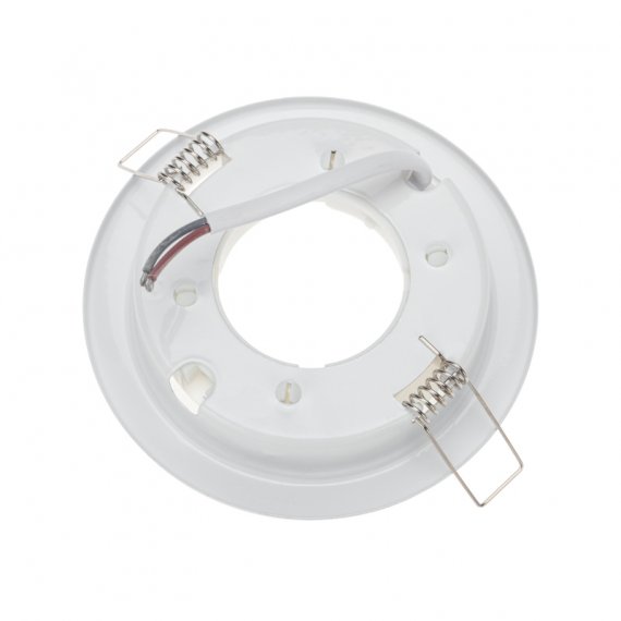 Корпус светильника выполнен из прочной стали серебристого цвета с глубиной монтажа 24 мм.