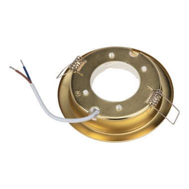 Корпус светильника выполнен из прочной стали золотистого цвета с глубиной монтажа 24 мм.