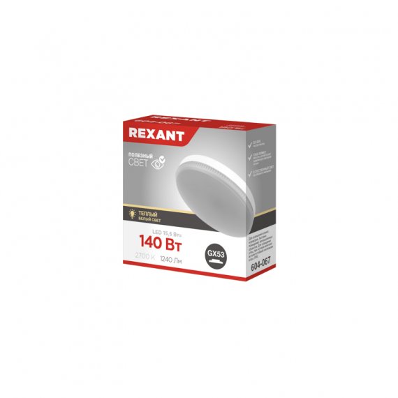 Rexant 604-067-5 Лампа светодиодная GX53 таблетка 15,5Вт 1240Лм AC180~265В 2700К