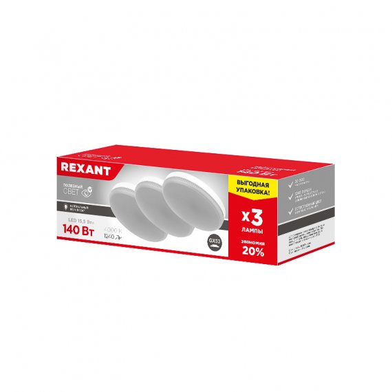 Лампа светодиодная GX53 таблетка 15,5Вт 1240Лм AC180~265В 4000К (3 шт/уп) REXANT